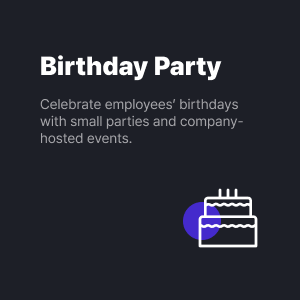 ![]() | Birthday Party Celebrate employees’ birthdays with small parties and company-hosted events. |