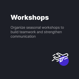 ![]() | Workshops Organize seasonal workshops to build teamwork and strengthen communication. |