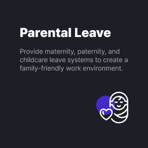 ![]() | Parental Leave Provide maternity, paternity, and childcare leave systems to create a family-friendly work environment. |