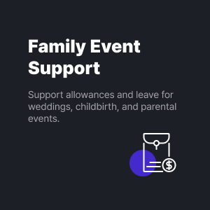 ![]() | Family Event Support Support allowances and leave for weddings, childbirth, and parental events. |